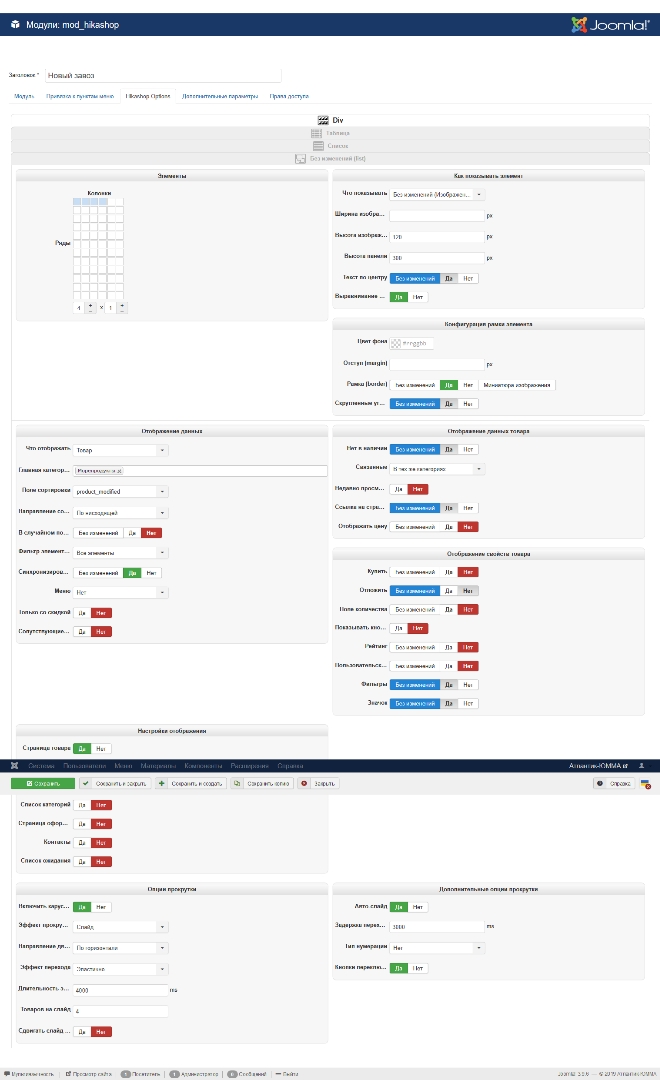 Не работают опции прокрутки в модуле Content display for Hikashop