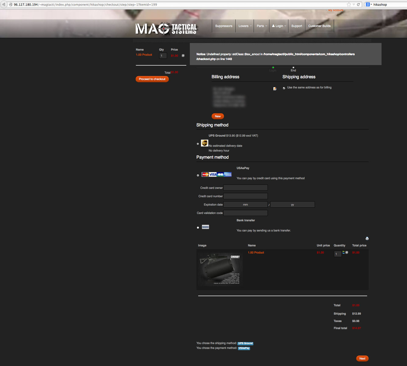 Notice: Undefined property: stdClass::$tax_amout in /home/magtacti/public_html/components/com_hikashop/controllers/checkout.php on line 1443