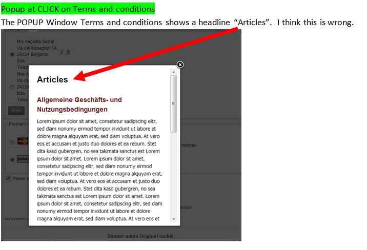 The popup window of the terms and conditions shows a headline ARTICLE