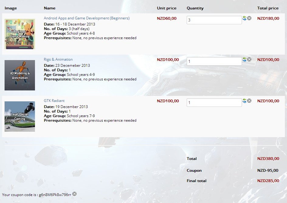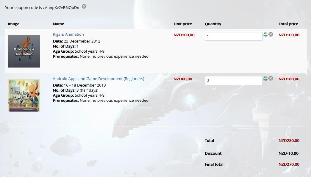 The coupon should be applied only on the products of the category "1 Day" if the order is upper than NZD200 and it's applying to product only.