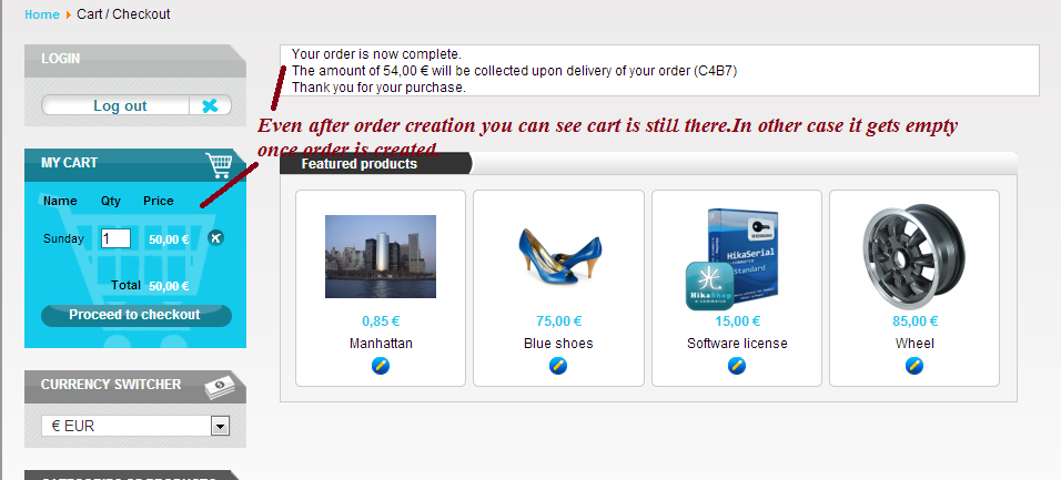 // set the current cart to 0 in session.