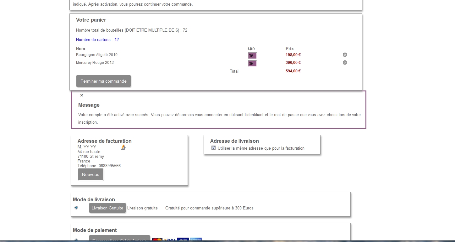 Bien entendu, je souhaite conserver "Votre compte a été activé avec succès".