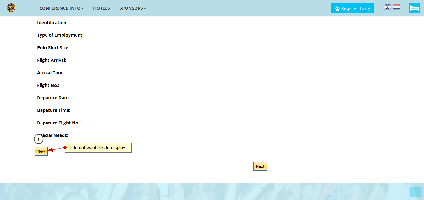 After completing the registration form in the checkout process, I click next which takes me to a confirmation page entitled "Billing Address". At the end of that form is a New button. How can I get rid of or cause that New button not to show? See attached example.