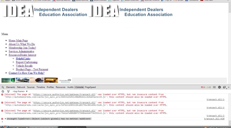 I set it back to Yes. Registered as a new user, was redirected to Authorize.net payment page, submitted payment, and the Authorize.net thank you page is messed up, there is a script error (I think this is a script error).
