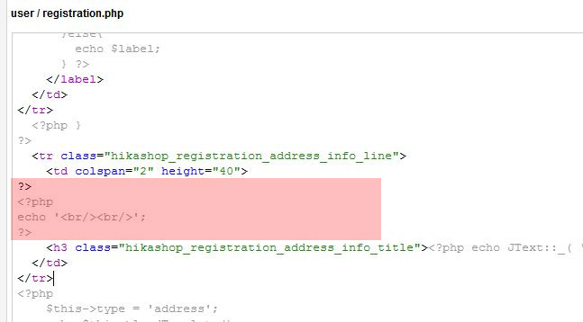 I am trying to add a line of space in the registration field, by adding a space in the PHP code rather than through CSS. Please look at the attachments. I have managed to add the line of space using the code below but the problem is '?>' now appears.
