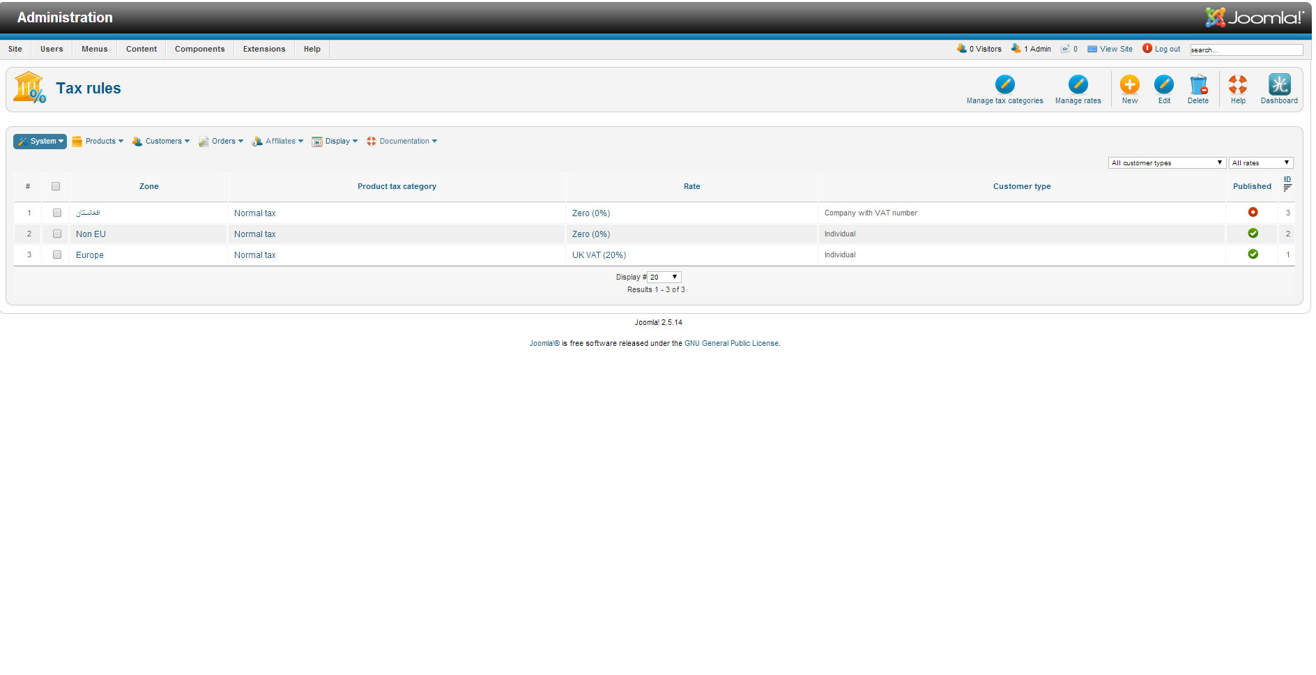 -- Joomla version -- : 2.5.14