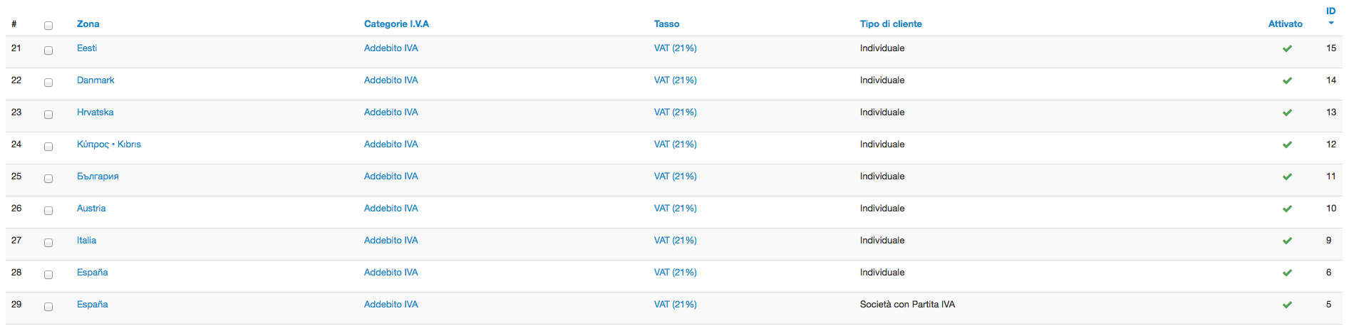 Thanks to it, you can create (or edit) a tax zone, like "Europe" and include all countries that you have to tax.