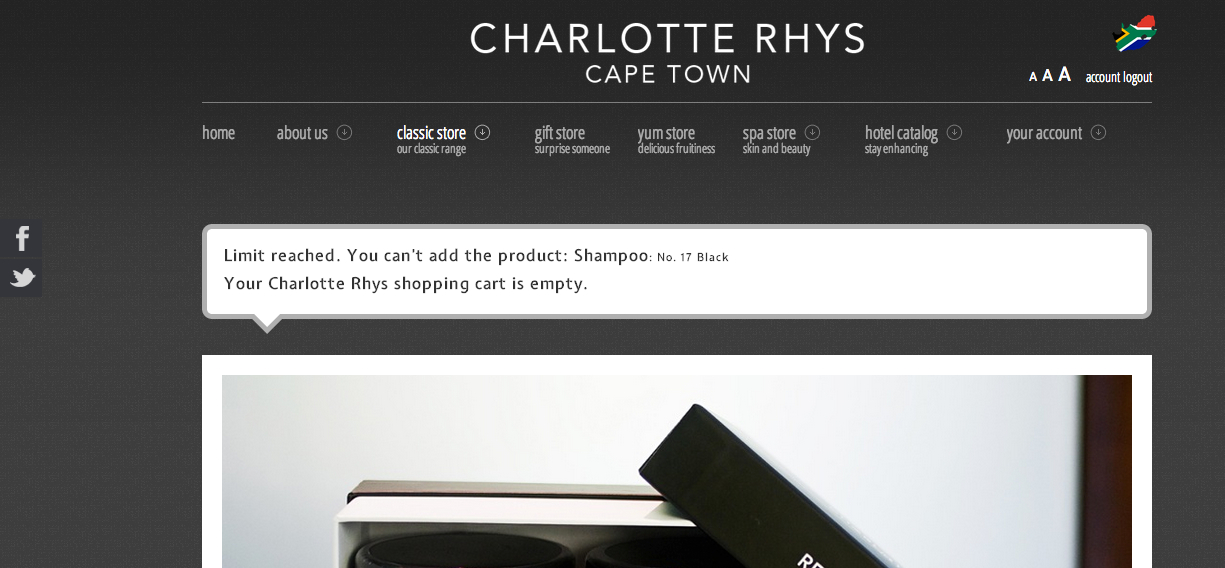 Also, once the order has been completed and I return to a product page I get an Empty cart message (which is fine) along with a "Limit Reached" error (which is not fine!).