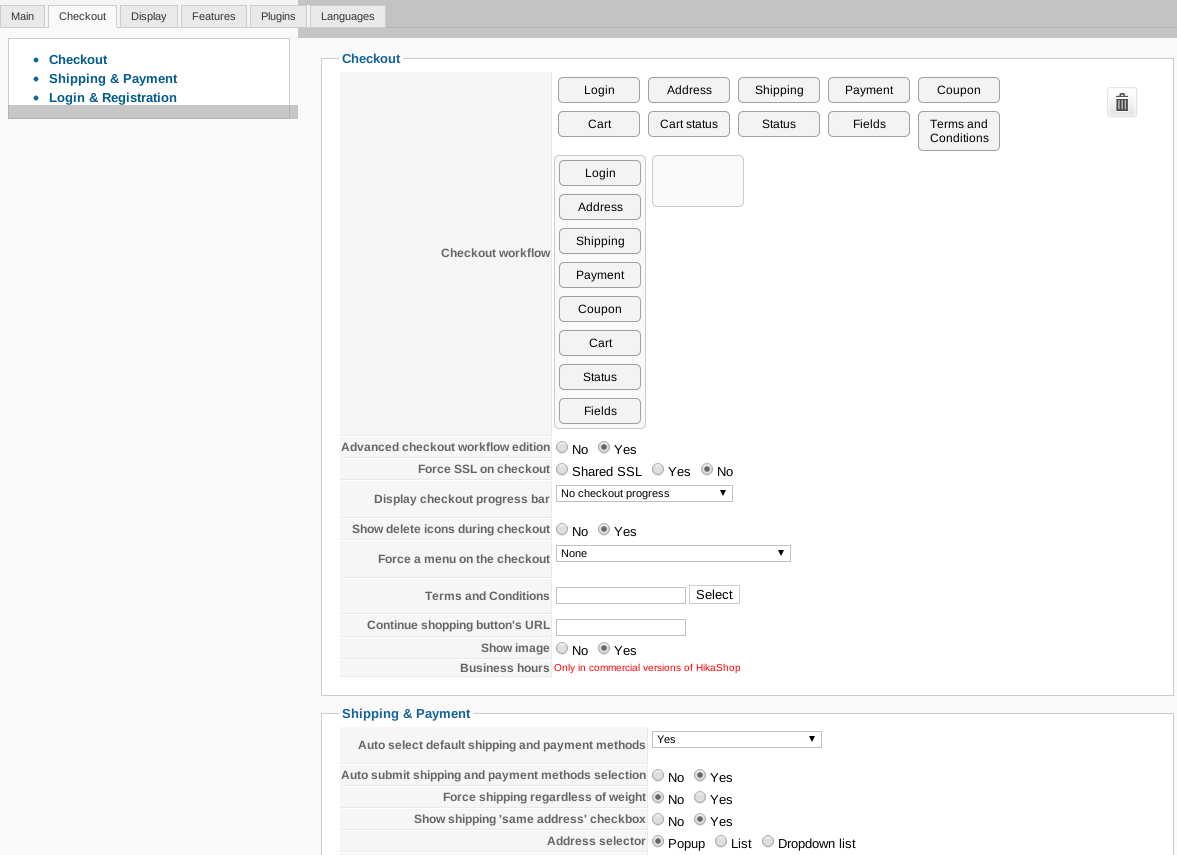 Can you test it with the "Force a menu on the checkout" option of the page "Hikashop->System->Configuration->Checkout" set to None ?