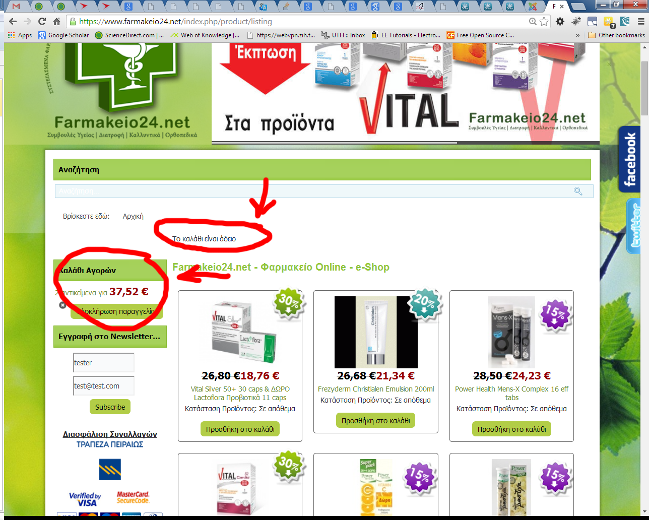 When I am at the last step and press complete order button system redirects me to the page: www.farmakeio24.net/index.php/product/listing