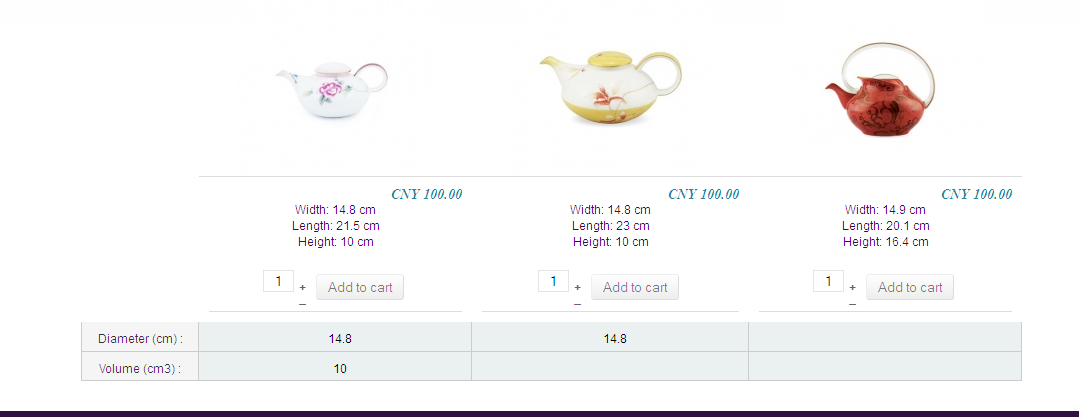 Just to be sure, you want to add the dimensions in the table under "Diameter" and "Volume", right ?