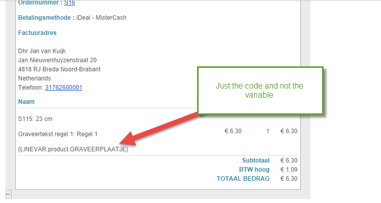 But without any result. Only the code is on the order e-mail and not the variable. See attached images.