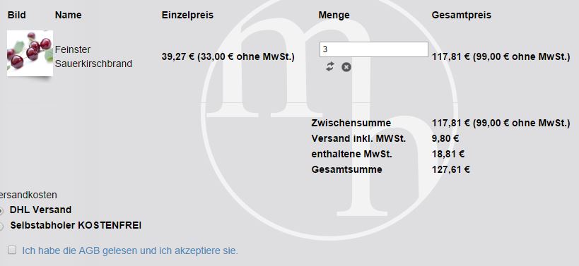 SUM TOTAL (Zwischensumme plus Shipping - > all incl VAT)