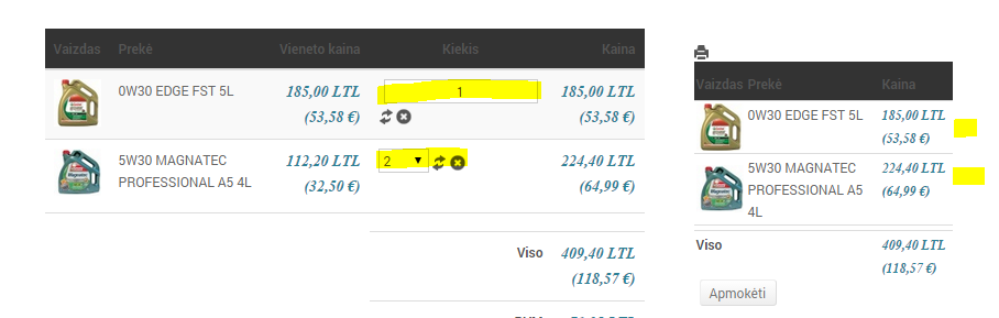 Third problem is also with card module, but on check out. It shows different ways to add product quantities.