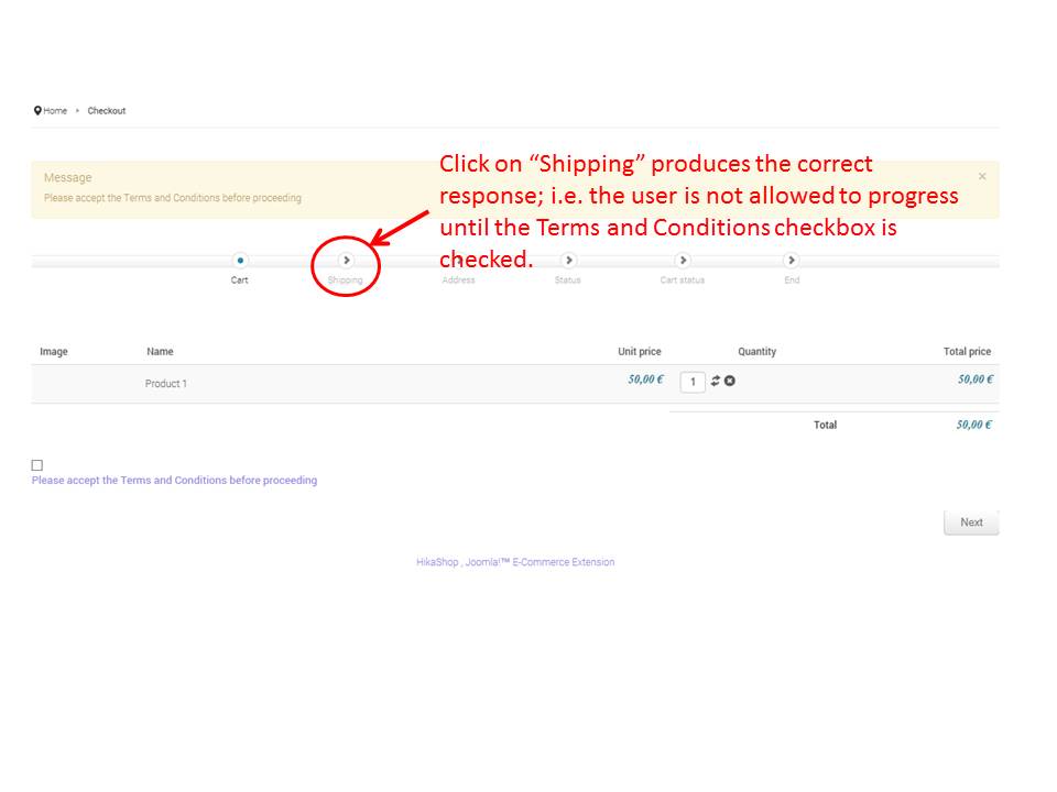 So the "check terms" will be called and if the user did not accept it ; he will be redirected to the step which include the controller.