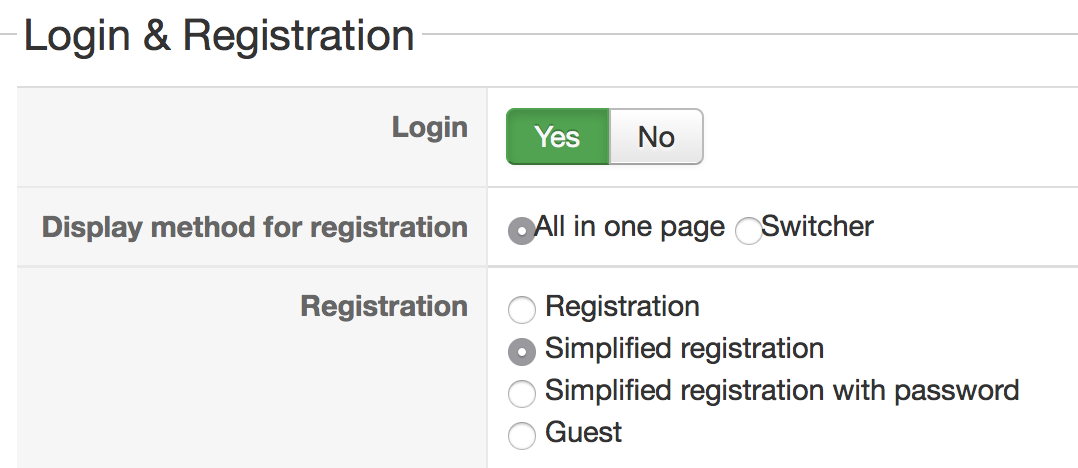 Note that the Registration / Display method for registration options are only available through an Hikashop commercial version.