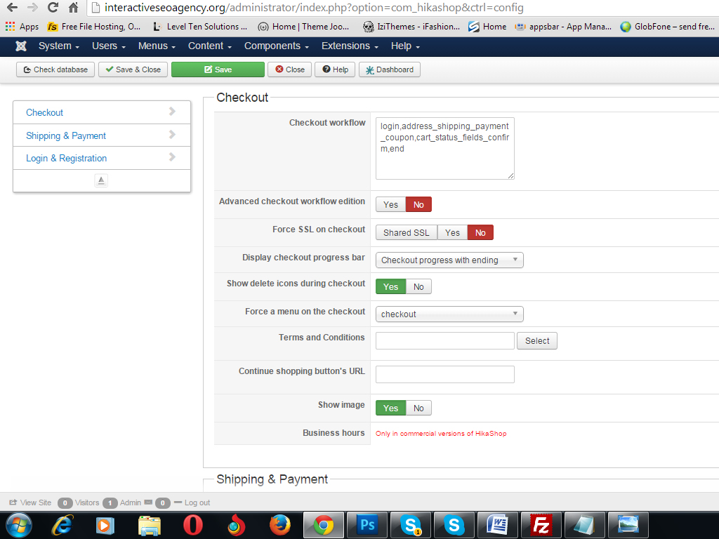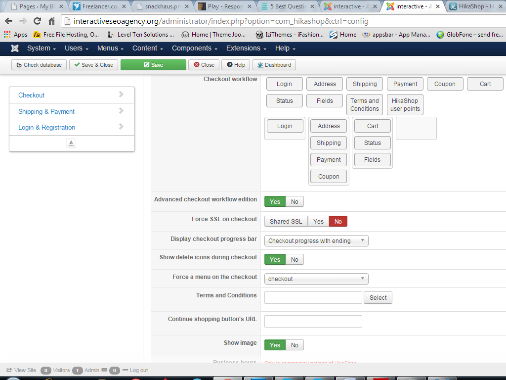 I just wanted you to show me some screenshots of your "checkout workflow" via "Hikashop->System->Configuration->Checkout" when the "Advanced checkout workflow edition" option was turned off :).