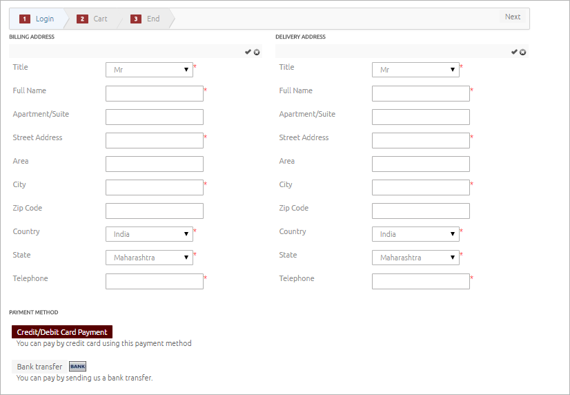 Login => Cart => End.