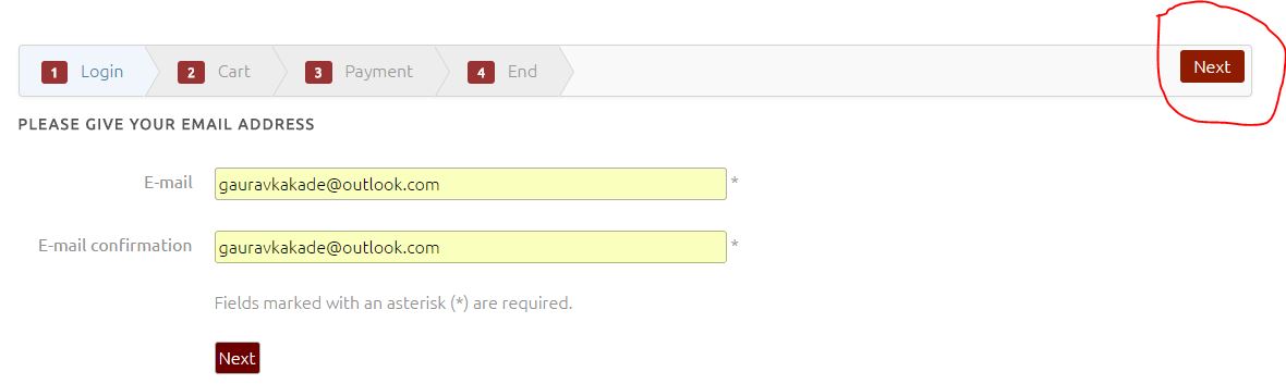 I am sorry but this is guiding me to nowhere. I have enabled the guest checkout and I want to keep it as it is. I also have done nothing special to add that 'Next' button in the navigation bar (or whatever you call it).