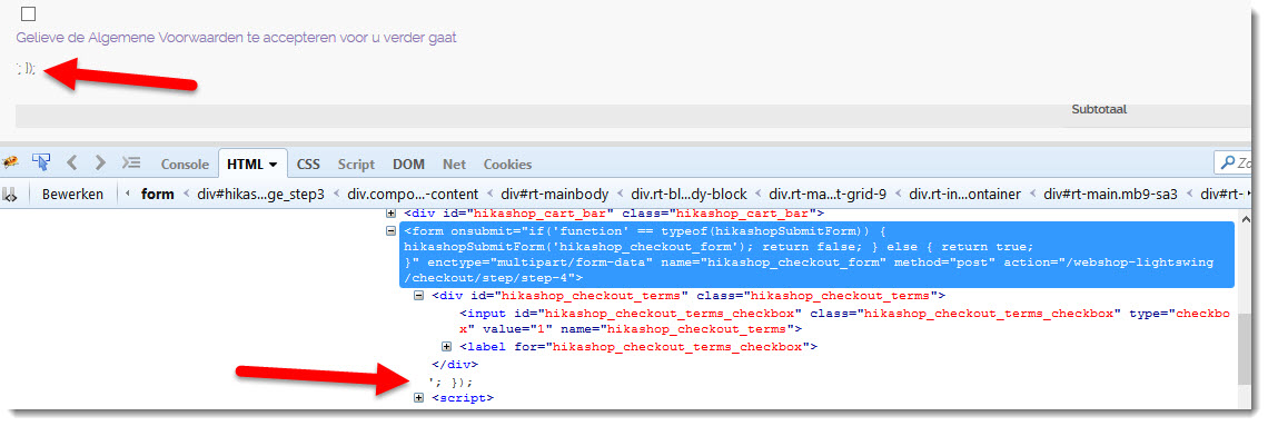 </script>There is no way that you'll only see '; });' unless something is modifying the rendering HTML.