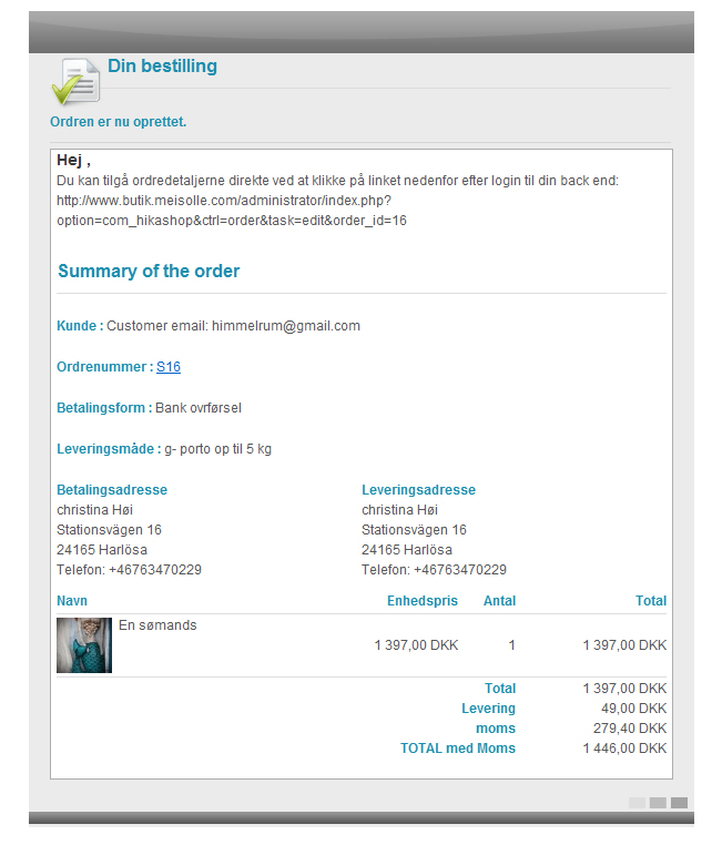 u kan tilgå ordredetaljerne direkte ved at klikke på linket nedenfor efter login til din back end: