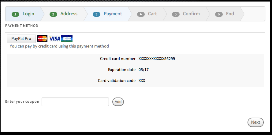 We're trying to get a new store up and running, and I found that during the checkout process, once I enter a credit card into the Paypal Pro payment page during checked, I'm unable to change it without logging out and back in.