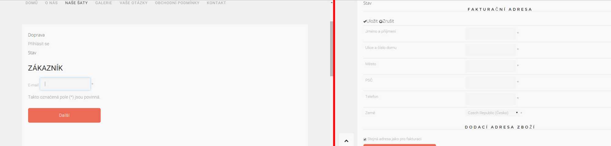 In checkout customer must enter his email, then accept terms and conditions and click on button next. Then he continue to next page, there he must enter his adress, name and he must again accept terms and conditions
