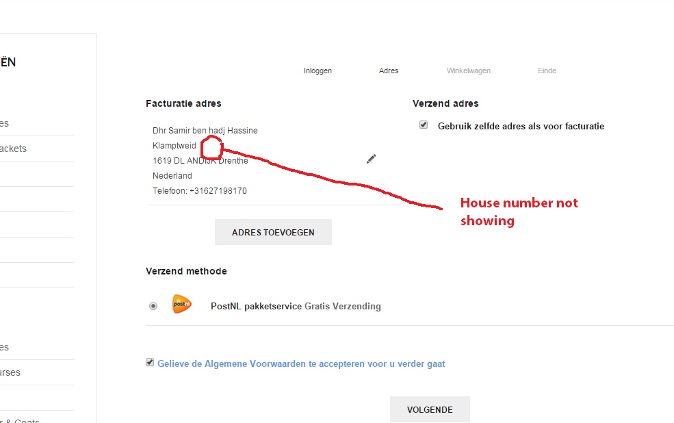 And I added ''housenumber'' customfield but it dont show at adres? how to solve this?