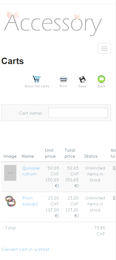 For the cart page of the user control panel, we didn't work on that yet. It's still on our todo list. If you want to do it, it's possible but it will require custom CSS code to be added to your website using the @media CSS query: