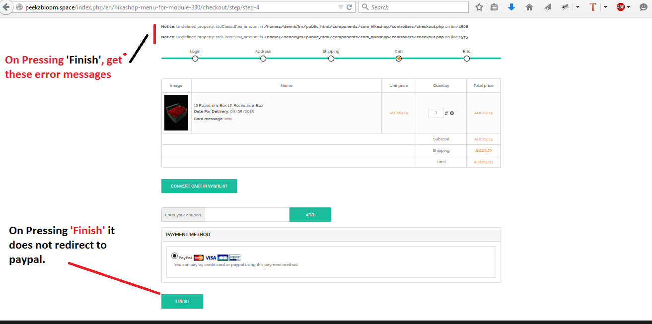 On checkout page, it does nor redirect to paypal