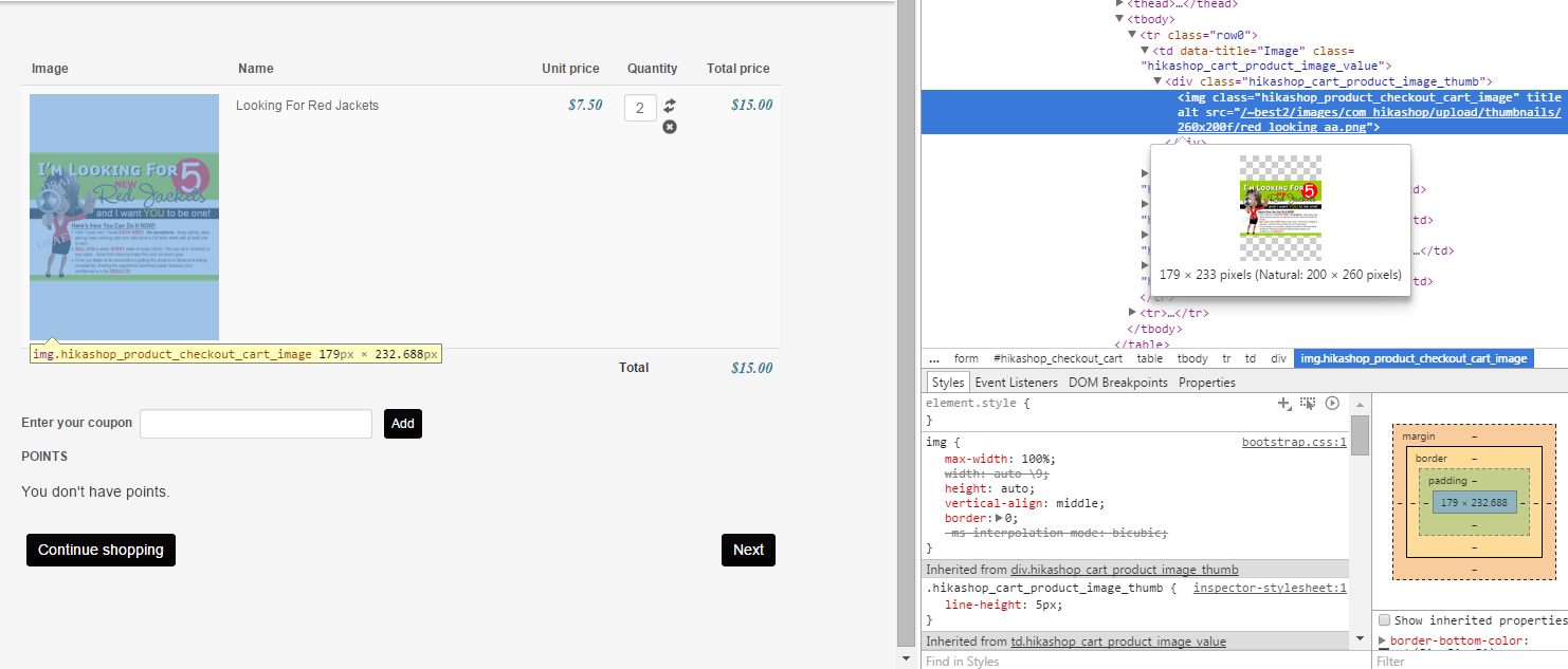 When I add an image for my product....in the checkout section. it seems that space is inserted above and below it so that it's not lined up to the top of the display.
