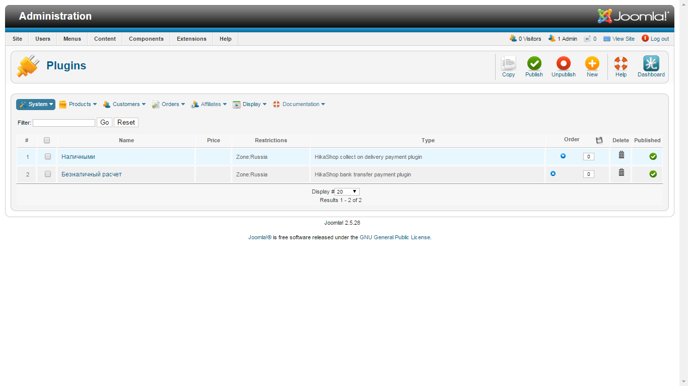 2. Also you're probably blocked through your checkout workflow because no error method was found, and that issue is coming from the fact that your products don't have any weight/dimensions, so if you don't want to fill each product wiehgt/dimensions you'll probably have to directly set the "Force shipping regardless of weight" option to YES via "Hikashop->System->Configuration->Checkout" and that should do the job.