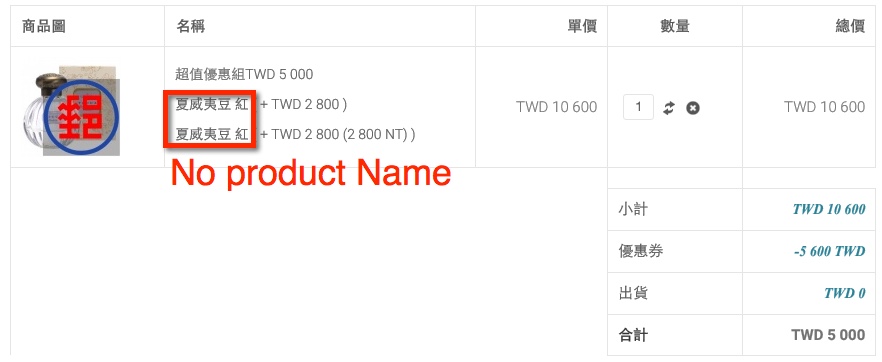 First,How to let A and B product name to show up on the cart? (you can see picture1)