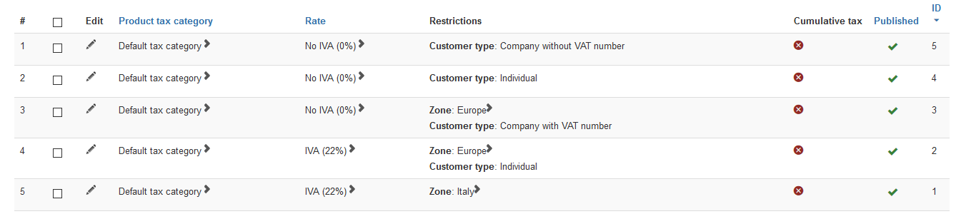 The store is located in Italy. We have created different taxation categories to sell worldwide, you can see those tax categories in the image attached.
