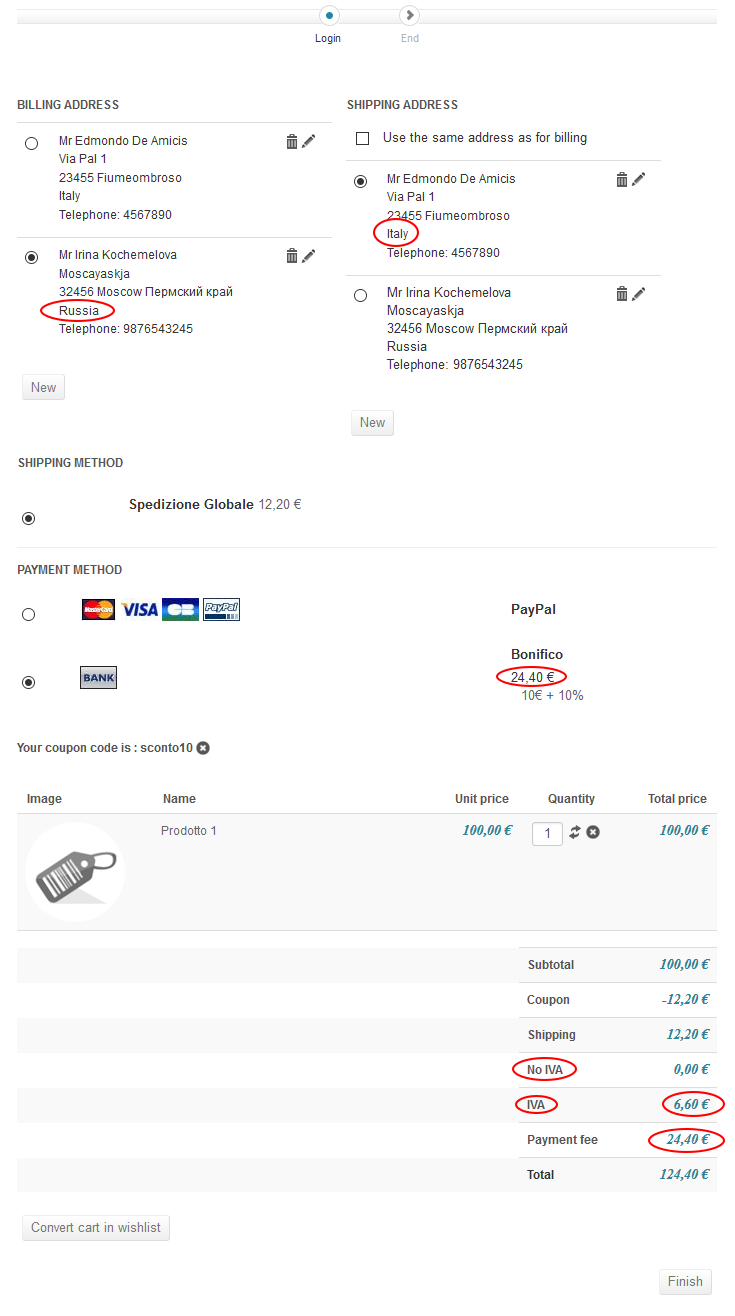 In some case of possible combinations, for example setting the billing address as Individual Russian (No VAT should be applied) and setting shipping address as Individual Italian, as you can see in the other attached image, something goes wrong in the cart. It displays both tax rules, meanwhile he should not even display them because the billing address is Russian, so no VAT should be charged.