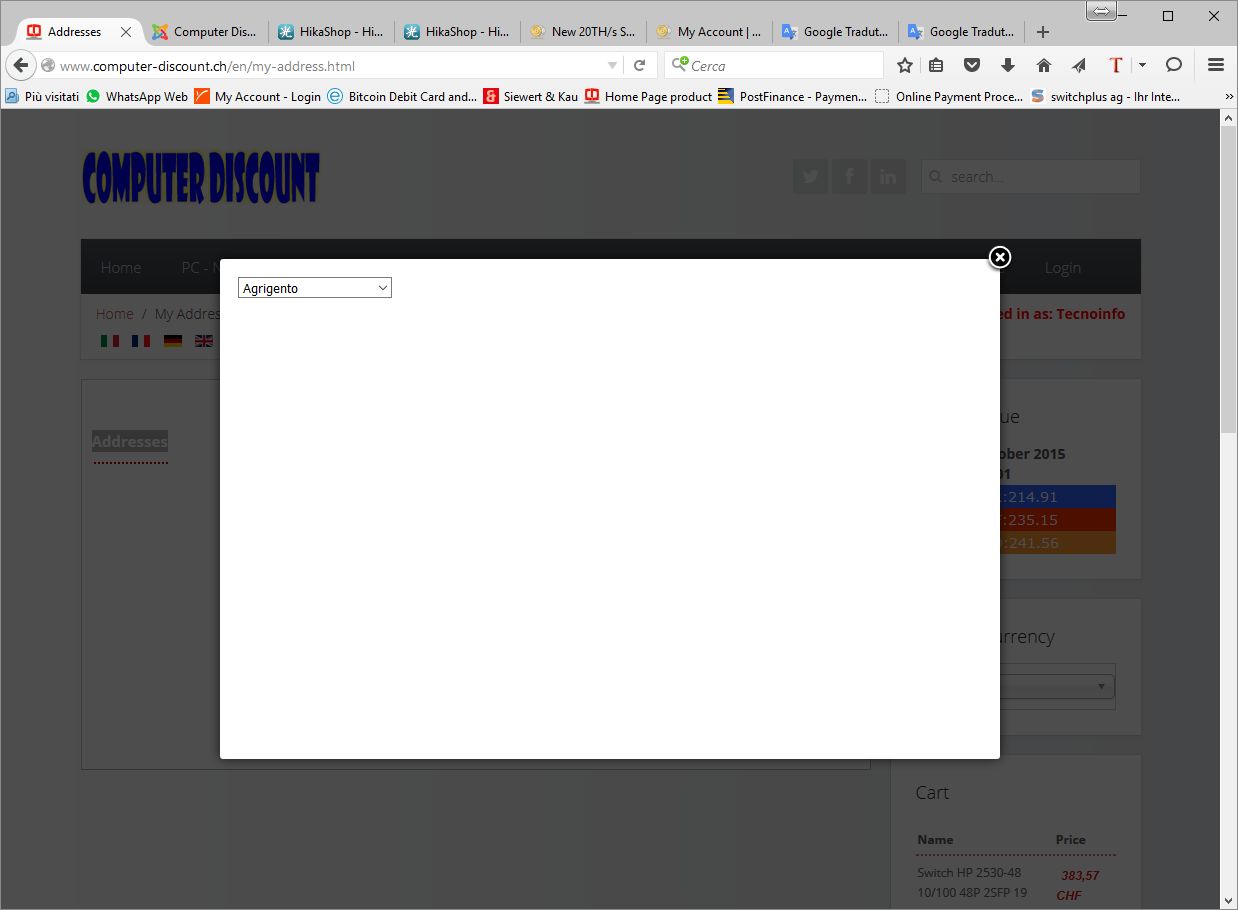 Try to turn off the setting "Use Chosen library" of the HikaShop configuration and see if that helps.