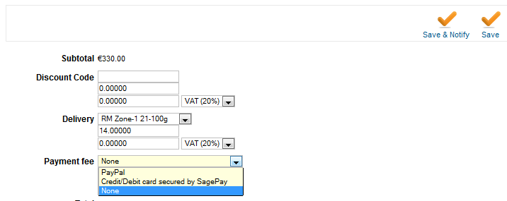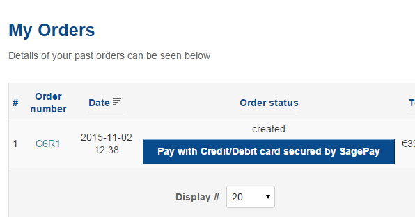 If I edit this as an admin [6] - changing it from 'None' to 'Sagepay', then the user can now see the payment option in the front-end [7].