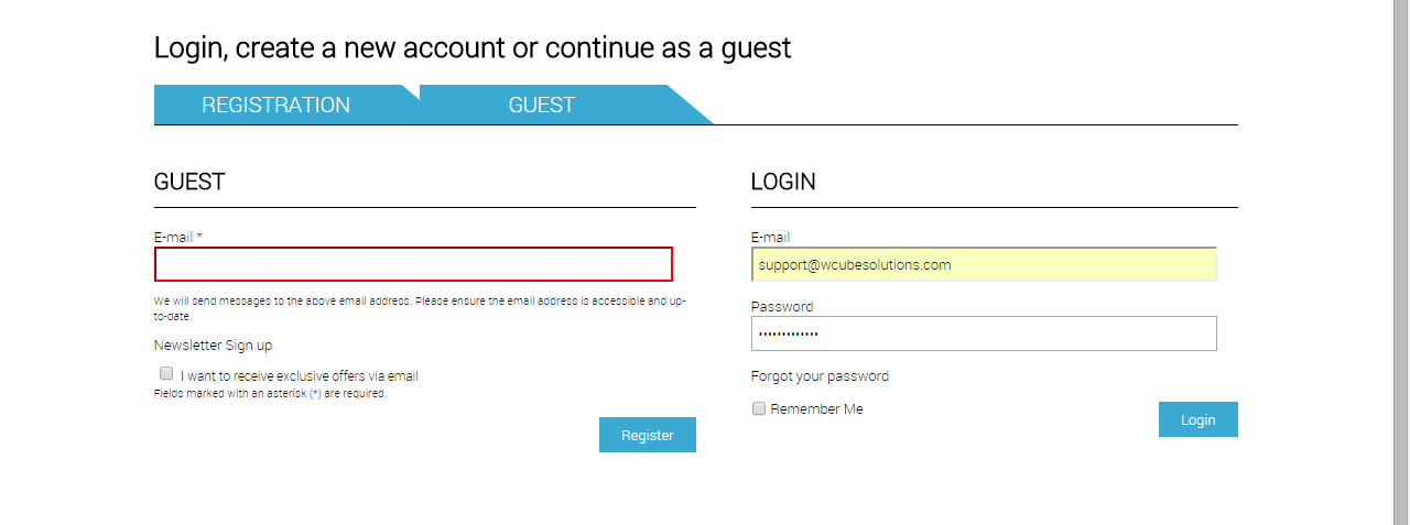 Good day! I am having problems with Login when checking out. My option is Switcher and I have 3 forms; Login, Registration and Guest. Whenever I add to my cart and I checkout and then I login, it doesnt proceed even if my credentials are correct. The E-mail field in Registration and Guest need to be filled up, but it should't work that way. Please help. Thanks!