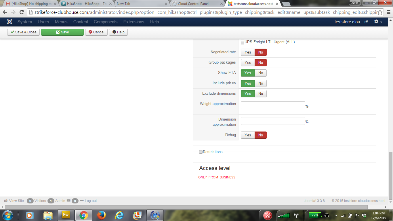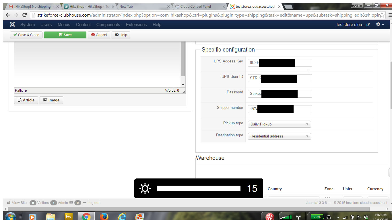 3. I just saw where to add a Warehouse in the Hikashop config. and when I did this and added it to a product No Shipping Method showed when this product was added to cart. If you only have one place where your products are shipped from and they are in the Main config. and in the Shipping config.(as shown in attachment). Do you need to publish and choose one?