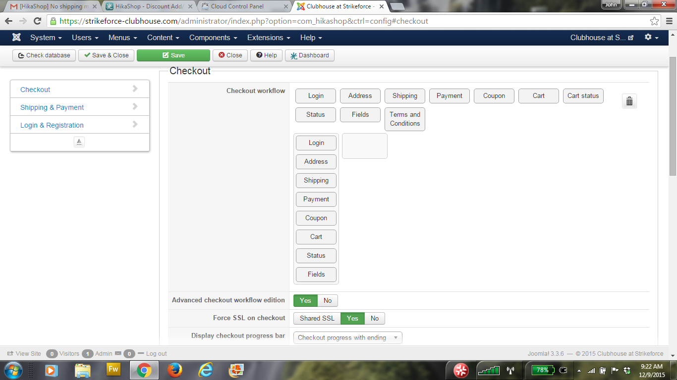2. Found the auto submit shipping payments - Still when I press checkout the Shipping Payment is blank until after I put my credit info. in and then press finish - Flat Rate Shipping or Free over $50 then appears (it is already calculated in total) depending on amount then it seems like I need to press finish again - strikeforce-clubhouse .com