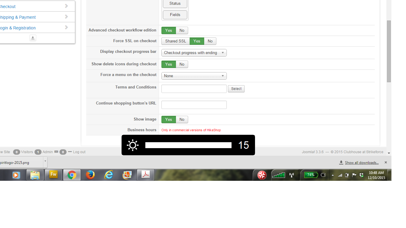 1. You SHOULD have it through the "Shipping & Payment" tab of the page "Hikashop->System->Configuration->Checkout".