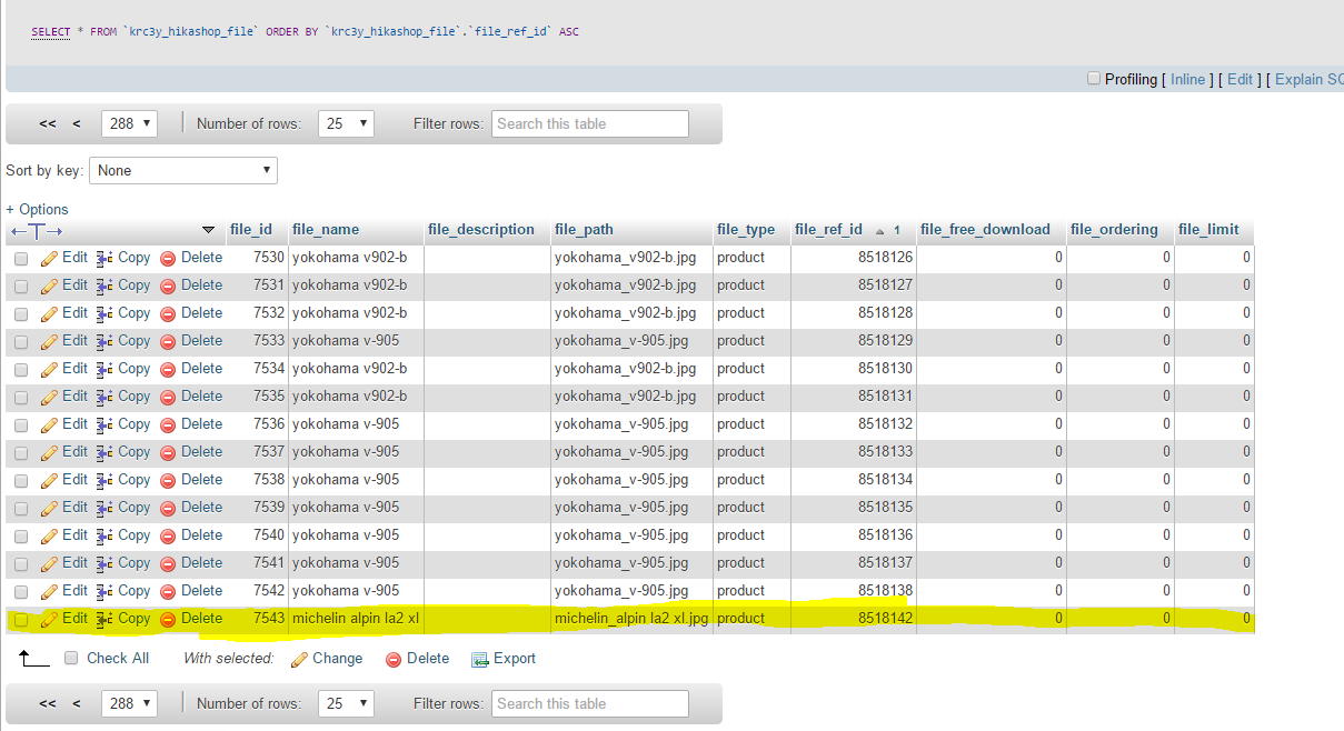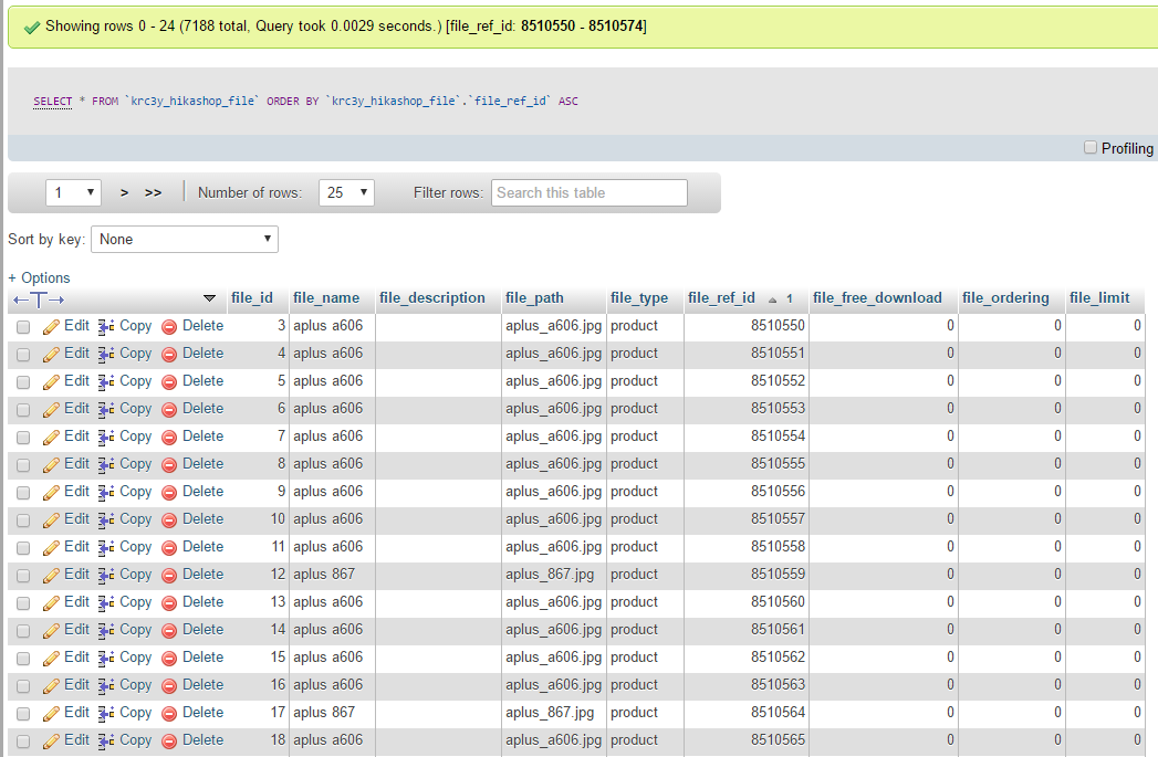 Could you look at the data in that hikashop_file table ?