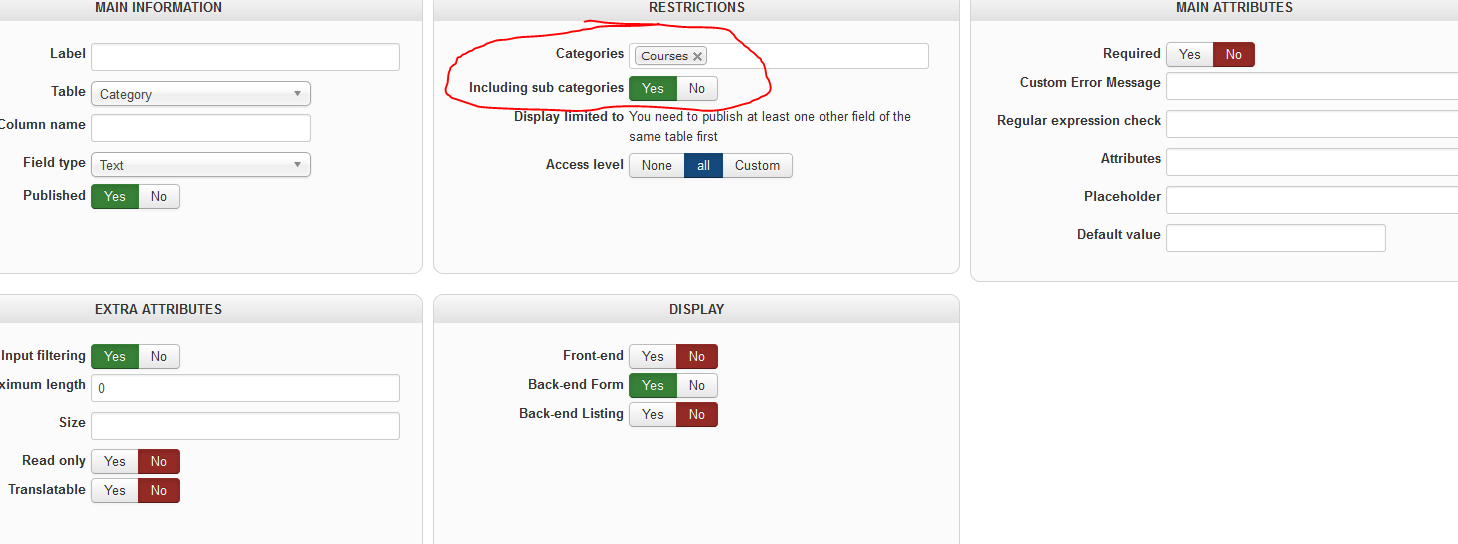 Navigating back to display custom fields shows that it was created, but I got the same error when attempting to edit it.