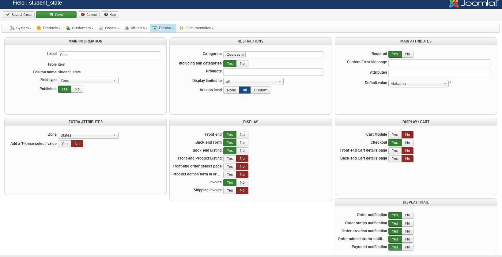 First off it is working now, but it has to be published on the "Front-End" or the States do not show. If you want access to figure it out let me know and I will provide it.