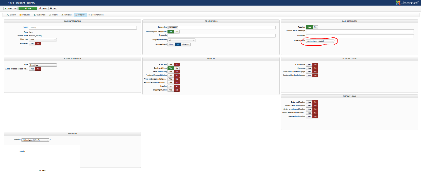 I was only able to get into it after unpublishing it. I thought all was well, but I would choose a default value for country and it would save, but default back to Afghanistan. This would happen no matter what country I chose.