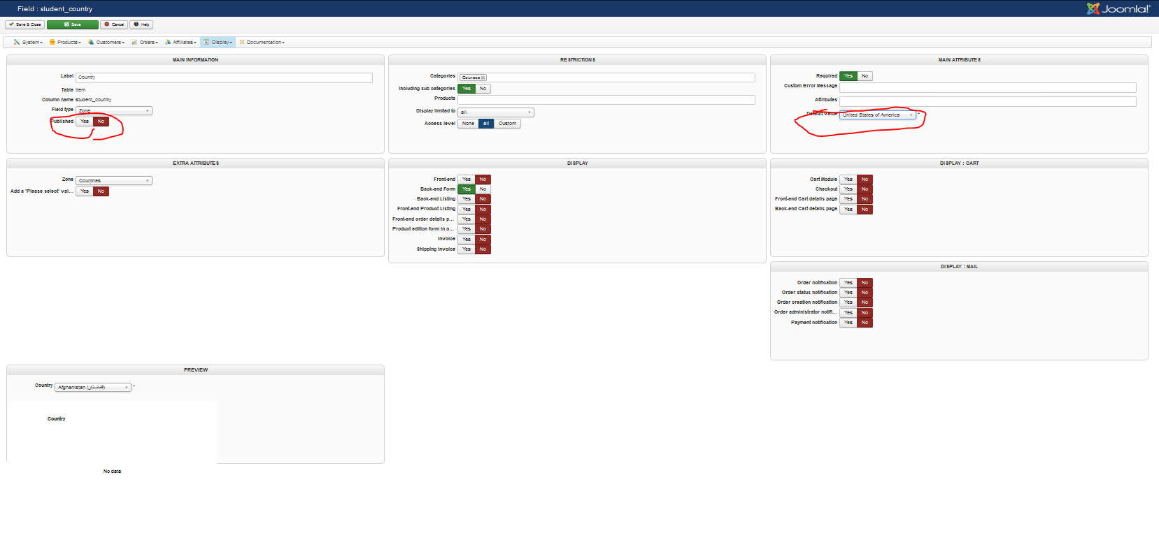 Only after I published again was I able to also save the desired country.