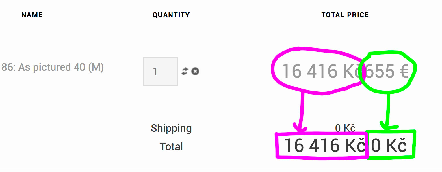 Products are in EUR currency and my default Hikashop currency is CZK.