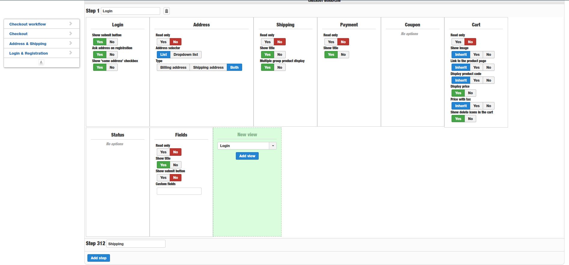I have an issue in the back end where the Configutration > Checkout Workflow - Yoou can not add steps or add views. If you click ADD STEP button the STEP (No) counts upwards everytime you click it but no area is shown to add the views. If you click on a view to add it to the next step then the STEP (No) starts counting upwards and nothing else happens.