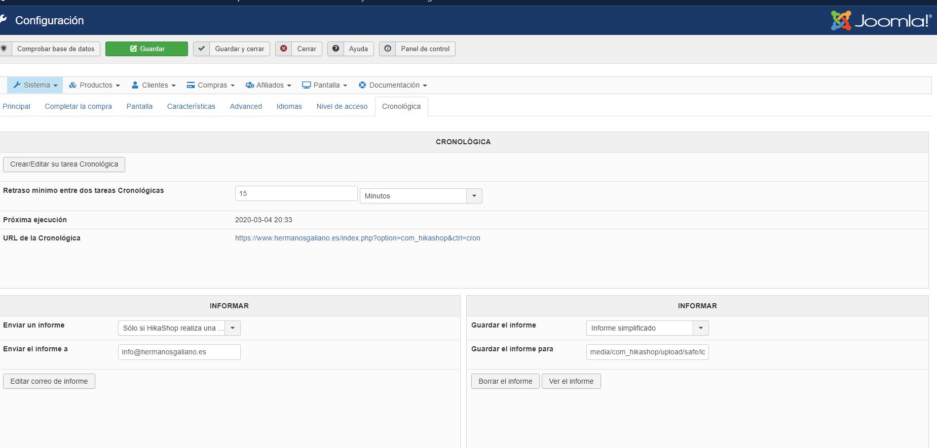 En Sistema, Cronológica el cron está activado, pero el plugin no trabaja.