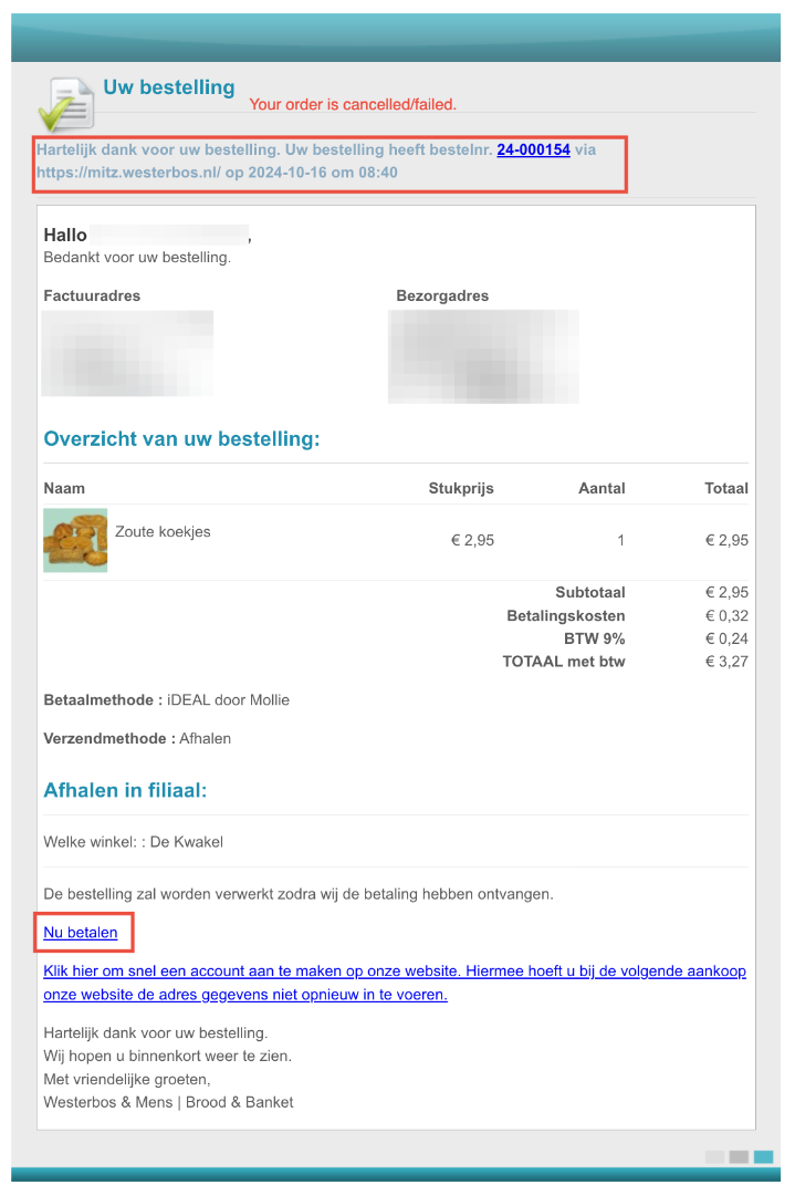 - Shopping cart, pushing the 'Next' button for the second step